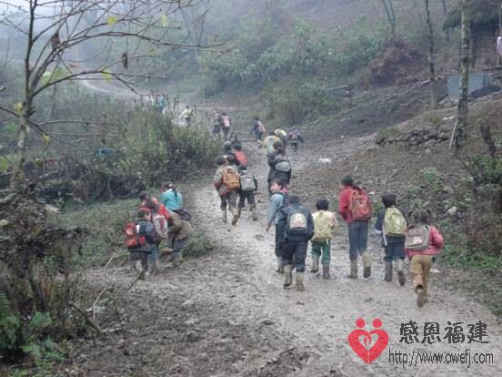 因为家里离学校很远,每天不等天亮就出门,孩子们在伸手不见五指的山路上步行一两个小时,非常危险。