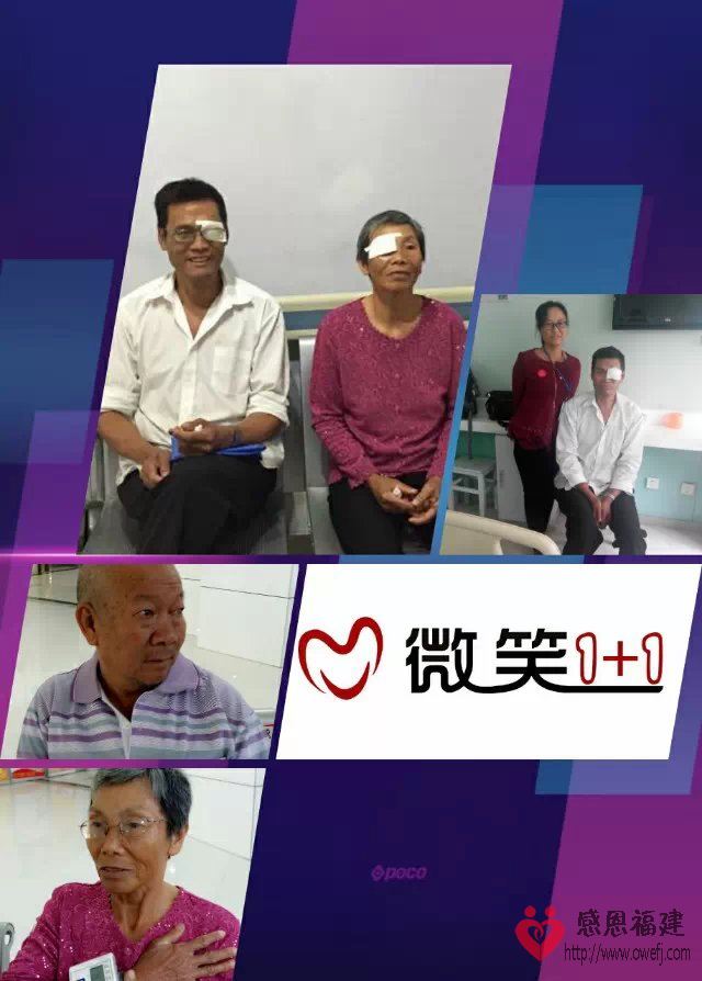 农工党省委社会服务部,东南眼科防盲办, 感恩福建,红苹果公益,微笑1+1爱心联盟的共同合作:方亨堂,陈碧兰,方本志几位老人,在志愿者雨泽妈的带领下,来到了东南眼科医院做手术,由于术前要做一系列的眼部检查,东南眼科医院防盲办高主任热情的陪同,让繁琐的检查流程,变得简便,并不厌其烦的解答问题,为了缓解老人对检查的紧张心理,高主任还和老人们拉起了家常。看到资料,发现一位老人有特殊病史,担心在繁多的检查项目,会使他焦虑不安,这样极有可能让他既往病史发作,于是和他攀谈起来,同时一直陪伴着排队,完成各项检查。经过手术和一晚观察,今天又去看望几位老人,手术非常成功,一位老人说,