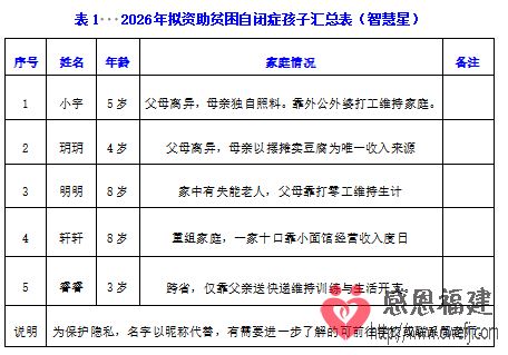 备注:若实际募集善款超出预算,超额部分全部转入下一年度自闭症儿童专项帮扶基金,全程公示、接受监督。