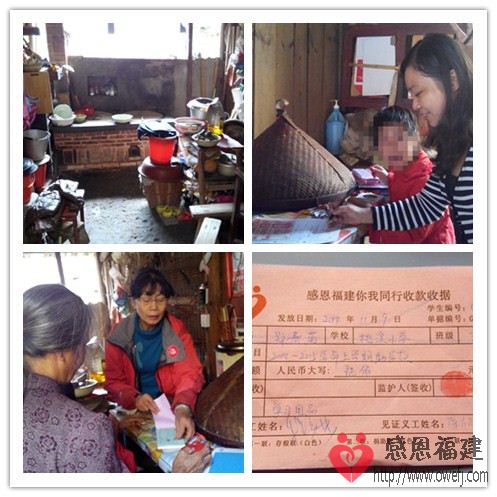本次下乡回访六个孩子,新增一个入户走访,发放2014-2015学年上学期助学款3800元整(GT—003小英600元、GT—006小枫600元、GT—000琪菲800元、GT—012小菊600元、GT—017小合600元、GT—018小莲600元);补发GT—000琪菲2013-2014学年下学期助学款差额200元以及助老小额发放1200元整(GT—ZL—001张自玉300元、GT—ZL—002郑亨善300元、GT—ZL—003李其彩300元,GT—ZL—004张素花300元),合计5200元整。另发放文具若干。感谢悠美的心辛苦驾驶以及古田当地义工丹丹等人一同入户!感谢悠美的心带给小朋友们的礼物。感谢爱心人士提供的文具用品。感谢各位义工的共同努力!
