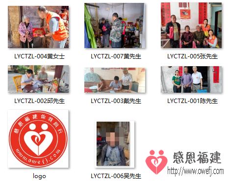 3、LYCTZL-003戴先生 戴先生,男,汉族,89岁,现住址长汀县河田镇,孤寡老人,一生未婚,无儿女。平时起居靠邻居帮忙照顾。生活不能自理,体弱多病,行动不是很自如,生活十分困难。