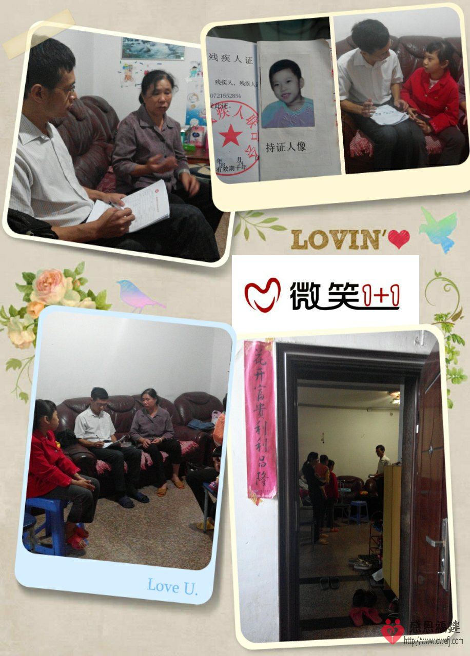 时间:2014年10月26日星期六地点:鼓楼枇杷山小区参加人员:许小利 张友隆1.小妍 小妍,女,2004.7.21出生,中度智障。 看到小妍的信息决定今天第一个走访她的家,和 小妍小姨取得了联系,小姨早早的就在公车站等着我们,远远就看见一个弱弱的身影,抱着一个孩子,果然是小姨。小姨带着我们来到他们租住的房子。小妍外婆一看见我们,眼眶就开始红了,哽咽的讲述了小妍母亲的遭遇。原来孩子生下来,发育就及其缓慢,两岁各方面指标均不达标。妈妈为了多赚点钱,马上要过年了,还得到山上去挖笋,结果在山上遇害了,爸爸第二天就不知去向。虽然公安机关破案了,但对方没有赔偿能力,一分钱都没有拿到。外公因走不出女儿遇害的事实,忧郁成疾,精神崩溃,需要长期吃药控制。这时照顾小妍和老伴的任务落在外婆身上,看着精神恍惚的老伴和发育缓慢的小妍,外婆眼睛都哭成严重眼疾。为了一家人的生活小姨来到福州打工,然后为小妍四处求医,但还是被确诊中度智障。慢慢小妍长大了,该上学了,小姨又多方找学校,好不容易在开智学校入学。漂亮的小姨许多人介绍男朋友,但看着结婚必须带着小妍,带着母亲,乡下病重的父亲。多少男孩胆怯了。后来好晚才有了家庭,和自己的孩子。这样一家七口的生活就落在小姨和她爱人身上,但他们就是最最普通的打工者。一家居住的房子就花去了小姨的工资,现在孩子们的开销非常大,小妍还体弱多病。现在租住的房子,他们已经无力承担。同去的心理咨询师张老师对小妍做了一个(CRT)联合型瑞文测试,小妍的分数45分,中度智障。小妍比正常儿童更需要一个良好家庭环境和积极的教养方式,因为特殊儿童在生理、心理上或多或少都有一些残疾,这给他们日常生活的各个方面都带来了不利的影响,与正常人交往时往往难以融 洽地沟通。外婆和小姨是孩子最亲近的人,每天生活在一起,比任何人更能理解他,关心她,可现在他们面对每天繁重的生活压力,已经是精疲力竭。 建议列入A类资助[url=]picimage.jpgjj.jpg[/url]