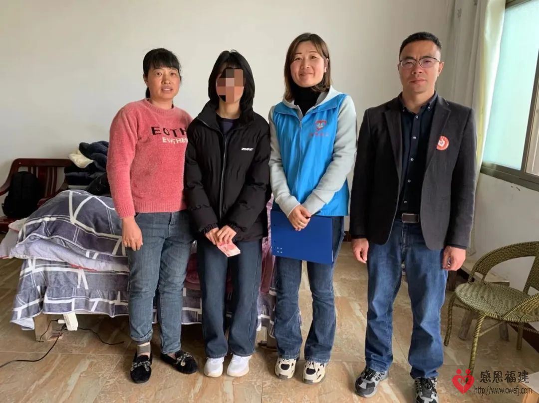 低收入群体,现就读于白中中学初三,学习成绩优秀,母亲在家照顾家庭和孩子,父亲没有手艺,打零工,收入不稳定。家中还有一个妹妹,就读田中幼儿园,家庭经济负担重。(由长乐普贤寺爱心人士现场发放助学款800元)
