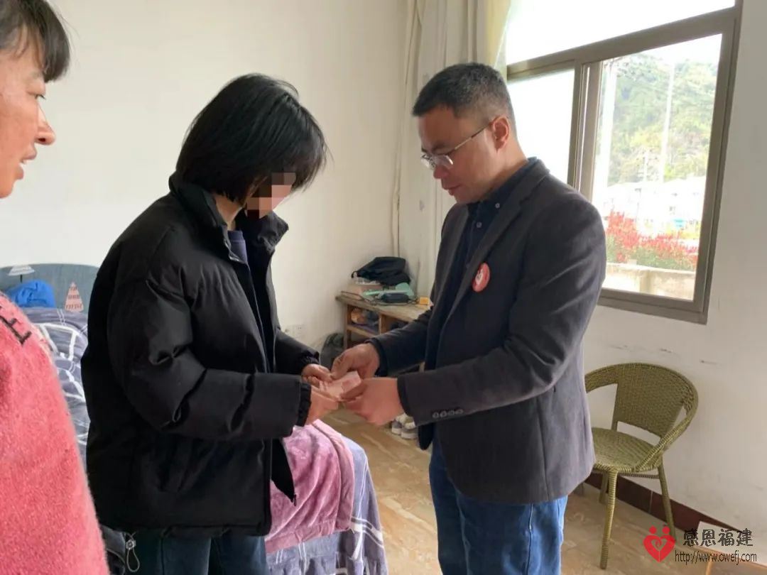 白中中学初二,成绩中山,乐于助人。家庭是精准扶贫户,低保户,父亲已病故,母亲患有侏儒症,目前家中无收入,无劳动力,生活仅靠低保补贴。(由长乐普贤寺爱心人士现场发放助学款800元)
